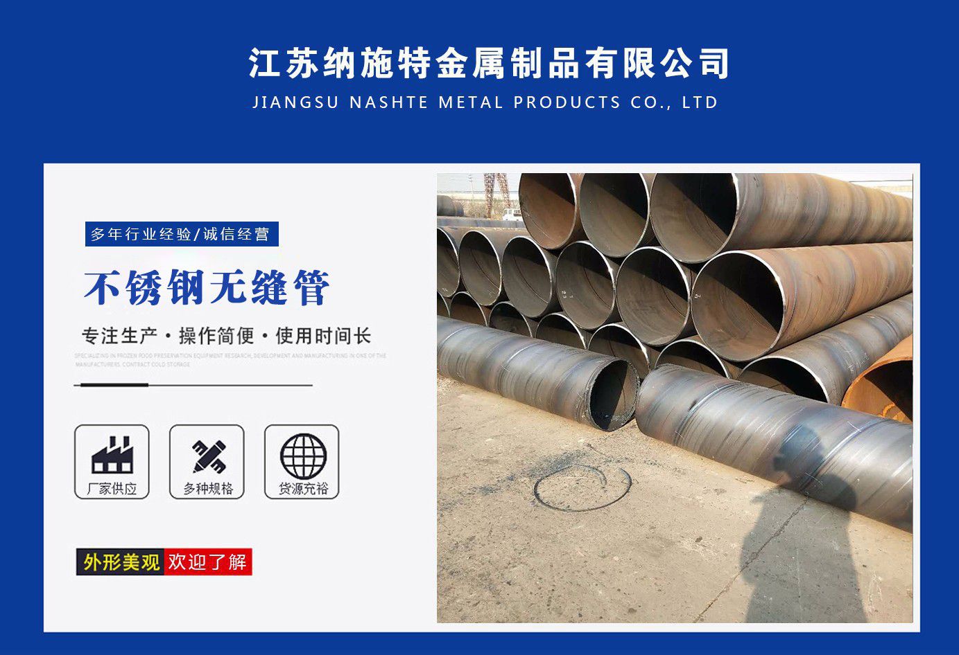 江蘇納施特金屬制品有限公司是一家集生產205不銹鋼無縫管,2507不銹鋼無縫管,316l不銹鋼焊管廠家,不銹鋼工業焊管廠家,厚壁無縫鋼管廠家等產品,公司庫存多規格齊全、質量保證。公司一貫以服務至上、質量至上、價格合理、客戶至上、讓利客戶、薄利多銷為原則,誠實守信為宗旨。 公司秉承“優質的品質和服務創造企業品牌”之宗旨,與國內外多家知名廠商建立了長期穩定的合作伙伴關系,精心匯聚各廠商的品牌產品,實現了資源互補,以適應市場的不同需求,協助廣大廠商提高自身的競爭力,是您的理想合作伙伴。 公司下屬:業務部、財務部、快運部、運輸部、倉儲部、加工部、(自備貨車、吊車、行車、自動切割、半成品)免費為用戶提供裝卸等一條龍服務。保證用戶利益、互惠互利做生意、誠心誠意交朋友?! 》粘兄Z:提供優質的不銹鋼及有關產品,遵守道德標準,努力提供獨特的產品和高水平服務?! ≠|量承諾:隨時為客戶提供產品和服務,充分領會客戶要求,盡職盡責,永無例外,竭盡全力,持續發展。 公司秉承:“顧客至上,銳意進取”的經營理念,堅持“客戶至上”的原則為廣大客戶提供優質的服務。 愿我們公司和社會各界同仁、諸位朋友、尊貴的各位客戶攜手并進,共同發展,同繪新世紀的宏偉藍圖! 公司宗旨:優質的品質和服務創造企業品牌?! 〗洜I理念:以...